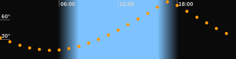 | Höchster Stand (Kulmination) | 17:09 Uhr (h = 87,9°) |
