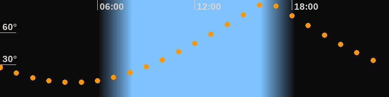 | Höchster Stand (Kulmination) | 16:26 Uhr (h = 87,9°) |