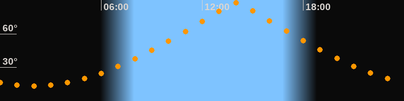 | Höchster Stand (Kulmination) | 14:01 Uhr (h = 87,9°) |