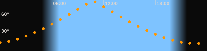 | Höchster Stand (Kulmination) | 10:45 Uhr (h = 87,9°) |