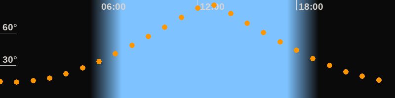| Höchster Stand (Kulmination) | 12:42 Uhr (h = 86,7°) |