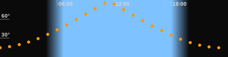 | Höchster Stand (Kulmination) | 11:24 Uhr (h = 86,7°) |