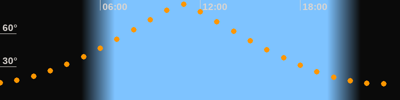| Höchster Stand (Kulmination) | 10:54 Uhr (h = 86,7°) |