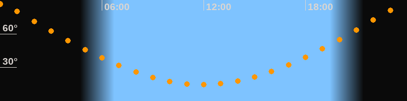 | Höchster Stand (Kulmination) | 23:54 Uhr (h = 86,7°) |