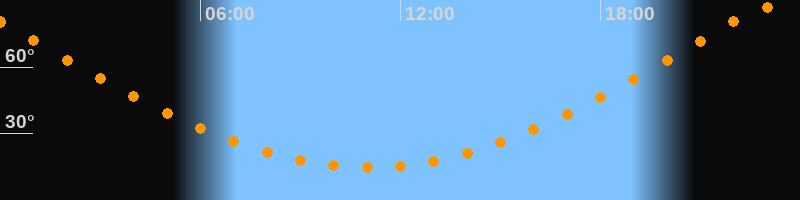 Höchster Stand (Kulmination)22:59 Uhr (h = 86,7°)