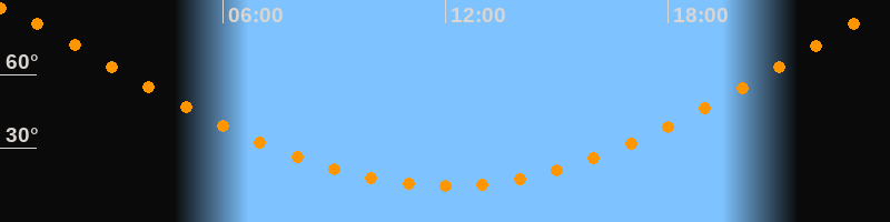 Höchster Stand (Kulmination)23:59 Uhr (h = 86,7°)