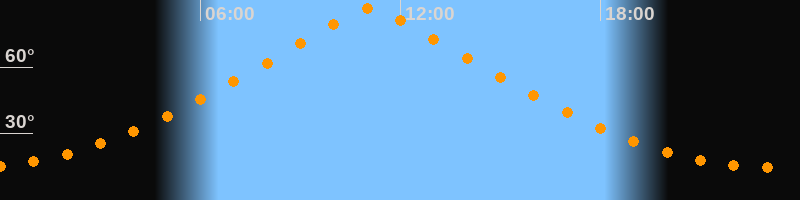 | Höchster Stand (Kulmination) | 11:06 Uhr (h = 86,7°) |