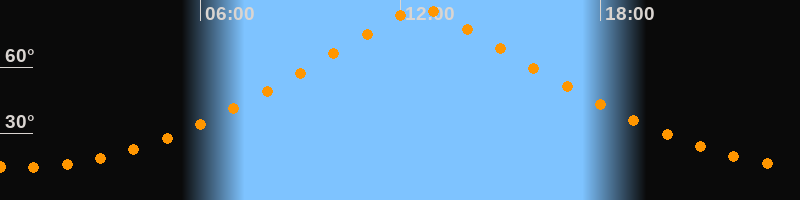 | Höchster Stand (Kulmination) | 12:37 Uhr (h = 86,7°) |