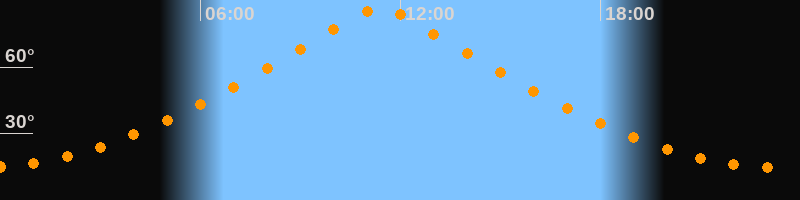 | Höchster Stand (Kulmination) | 11:23 Uhr (h = 86,7°) |