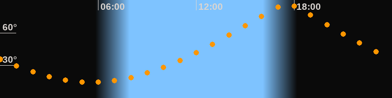 | Höchster Stand (Kulmination) | 17:33 Uhr (h = 86,7°) |