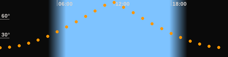 | Höchster Stand (Kulmination) | 11:49 Uhr (h = 86,7°) |