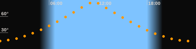 | Höchster Stand (Kulmination) | 11:26 Uhr (h = 86,7°) |