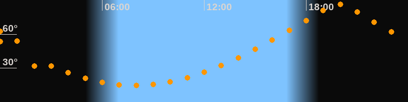 | Höchster Stand (Kulmination) | 19:55 Uhr (h = 86,7°) |