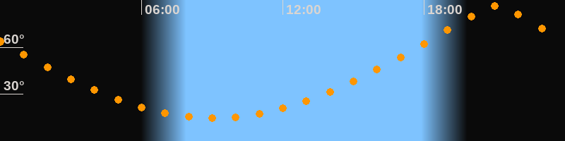 | Höchster Stand (Kulmination) | 21:03 Uhr (h = 86,7°) |