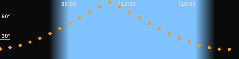| Höchster Stand (Kulmination) | 11:00 Uhr (h = 86,7°) |