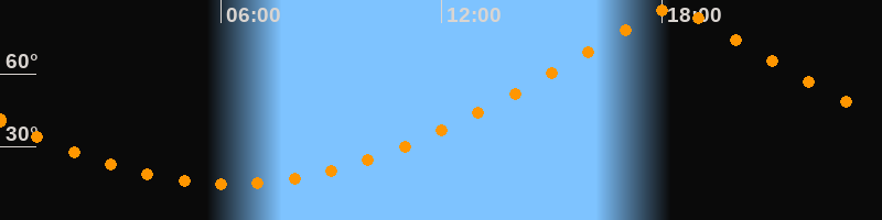 | Höchster Stand (Kulmination) | 18:16 Uhr (h = 86,7°) |