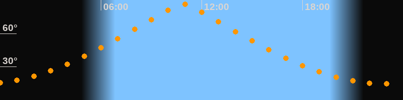 | Höchster Stand (Kulmination) | 10:53 Uhr (h = 86,7°) |