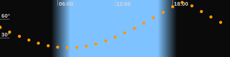 | Höchster Stand (Kulmination) | 19:04 Uhr (h = 86,7°) |