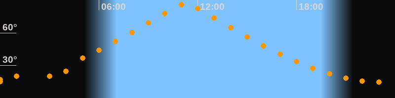 | Höchster Stand (Kulmination) | 11:15 Uhr (h = 86,7°) |