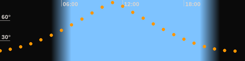 | Höchster Stand (Kulmination) | 11:04 Uhr (h = 86,7°) |