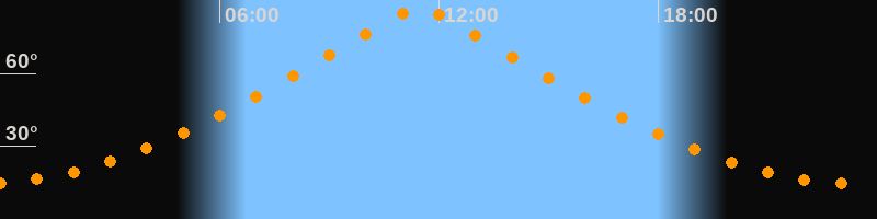 | Höchster Stand (Kulmination) | 11:27 Uhr (h = 86,7°) |