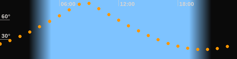 | Höchster Stand (Kulmination) | 08:36 Uhr (h = 86,7°) |