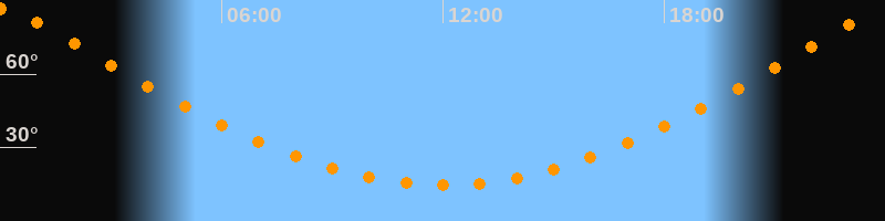 | Höchster Stand (Kulmination) | 00:01 Uhr (h = 86,7°) |