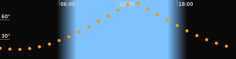 | Höchster Stand (Kulmination) | 13:37 Uhr (h = 86,7°) |