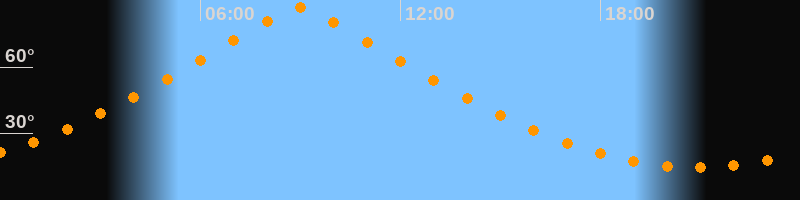 | Höchster Stand (Kulmination) | 08:58 Uhr (h = 86,7°) |