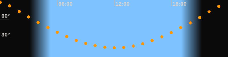 | Höchster Stand (Kulmination) | 00:00 Uhr (h = 86,7°) |