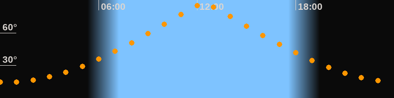 | Höchster Stand (Kulmination) | 12:24 Uhr (h = 86,7°) |