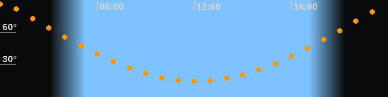 | Höchster Stand (Kulmination) | 00:06 Uhr (h = 86,7°) |