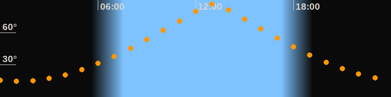 | Höchster Stand (Kulmination) | 13:05 Uhr (h = 86,7°) |