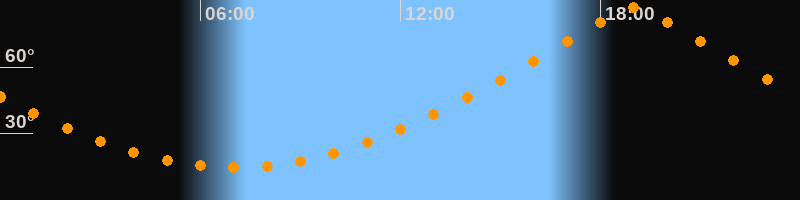 | Höchster Stand (Kulmination) | 19:00 Uhr (h = 86,7°) |