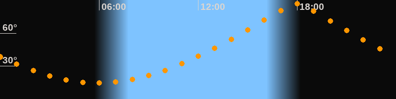 | Höchster Stand (Kulmination) | 17:57 Uhr (h = 86,7°) |