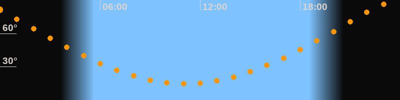 | Höchster Stand (Kulmination) | 23:06 Uhr (h = 86,7°) |