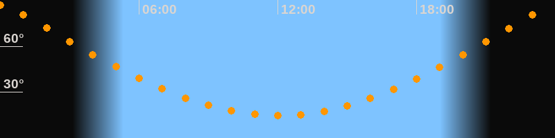 | Höchster Stand (Kulmination) | 23:59 Uhr (h = 86,7°) |