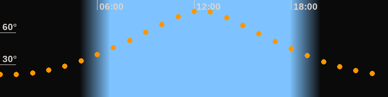 | Höchster Stand (Kulmination) | 12:25 Uhr (h = 80,5°) |