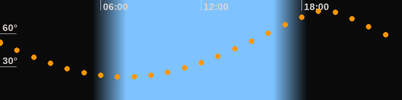 | Höchster Stand (Kulmination) | 19:23 Uhr (h = 80,5°) |