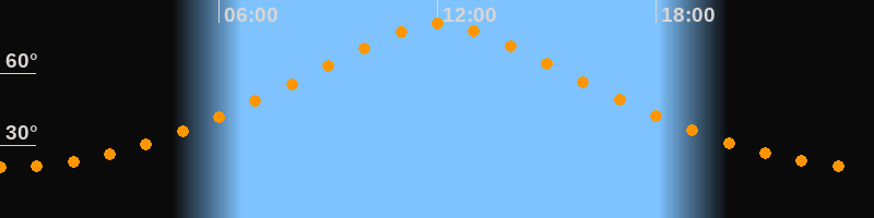 | Höchster Stand (Kulmination) | 12:03 Uhr (h = 80,5°) |