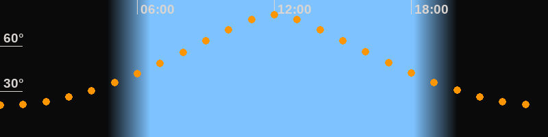 | Höchster Stand (Kulmination) | 12:00 Uhr (h = 80,5°) |