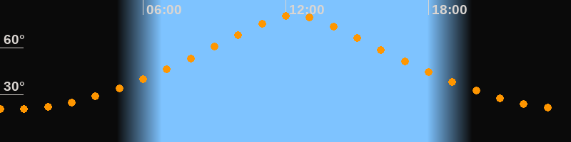 | Höchster Stand (Kulmination) | 12:21 Uhr (h = 80,5°) |