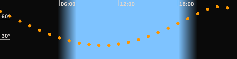 | Höchster Stand (Kulmination) | 22:13 Uhr (h = 80,5°) |