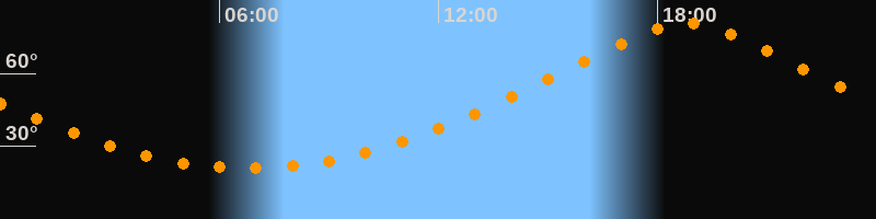 | Höchster Stand (Kulmination) | 18:47 Uhr (h = 80,5°) |