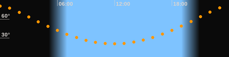 | Höchster Stand (Kulmination) | 23:56 Uhr (h = 80,5°) |