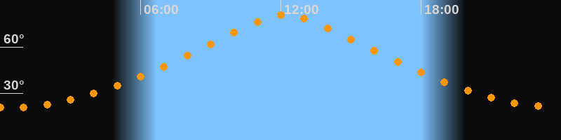| Höchster Stand (Kulmination) | 12:12 Uhr (h = 80,5°) |