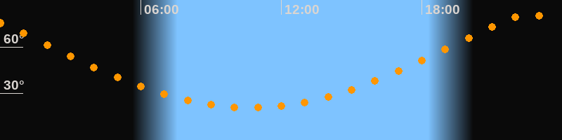 | Höchster Stand (Kulmination) | 22:39 Uhr (h = 80,5°) |