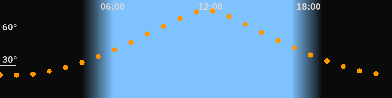| Höchster Stand (Kulmination) | 12:36 Uhr (h = 80,5°) |