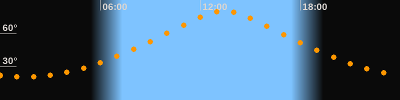 | Höchster Stand (Kulmination) | 13:25 Uhr (h = 80,5°) |