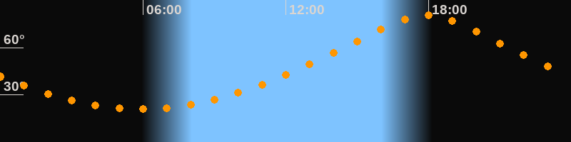 | Höchster Stand (Kulmination) | 17:54 Uhr (h = 80,5°) |